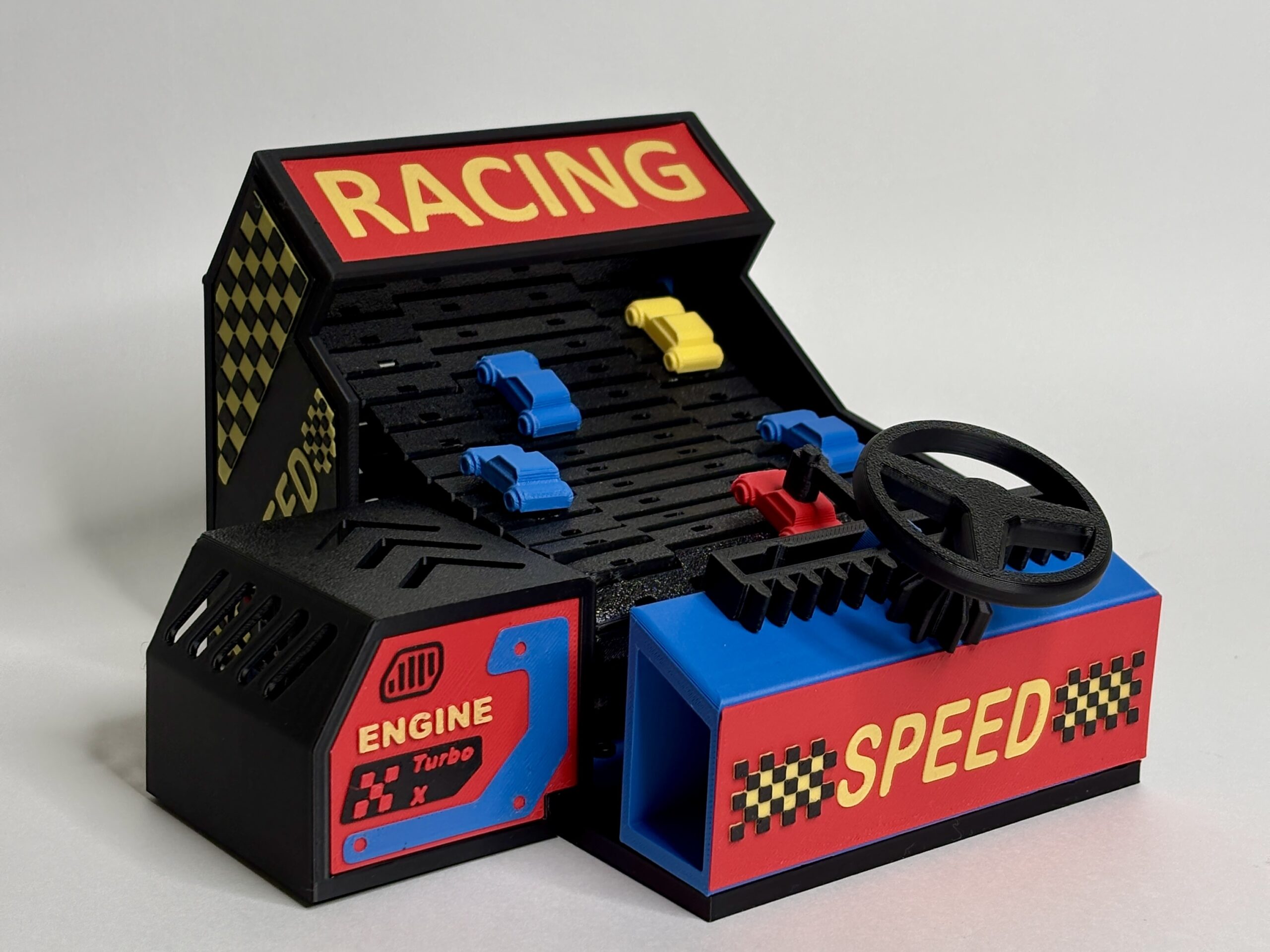 🕹️ Arcade-Inspired Fun: A mini car-dodging game controlled with a steering wheel.